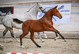 Nachkomme von Kartal's Emerald (Emerald x Bella Donna) und Creamy PJ (Colman, Stakkato, Periguex). Wurde sehr gut auf dem Fohlenchampionat in Avenches benotet. Endmass ca. 168-170 cm.