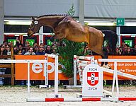 Empire CH p. Emerald van't Ruytershof - Caladetto a particulièrement bien réussi l'épreuve dans le couloir. Avec beaucoup d'assurance, il a réalisé une « performance très complète » et a même obtenu la note maximale de 10 pour la qualité de la part du juge français. Les félicitations pour cette belle performance ont été adressées à l'éleveur Sandro Rindisbacher, Wohlen AG, qui est également propriétaire de l'étalon avec sa société Imcon AG, Zurich. L'étalon a été habilement préparé et présenté par Olivier Meyer, cavalier au Haras national d'Avenches.