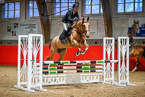 Quatre jeunes chevaux étaient inscrits pour le saut d'obstacles. D'une part, Gamina vom Eigen (Grandorado TN – Quiwi Dream), également âgée de quatre ans, élevée par Josef Wiggli. La jeune jument baie a passé le test en terrain l'année dernière et possède un excellent pedigree de saut, ce qui en fait une candidate idéale pour la promotion du saut d'obstacles. Il y avait également Cayden du Prés Mo CH (Caruso KER – Lupicor), âgé de cinq ans, provenant de la maison Studer à Delémont. À quatre ans, ce hongre alezan au caractère calme a déjà participé avec succès au championnat suisse pour jeunes chevaux et a réalisé plusieurs parcours sans faute jusqu'à 100 centimètres. « Monter ce cheval est un plaisir, cela se voit chez le cavalier », explique Raulf. Le bai Tabago von Büren CH (Tobago Z – Toulon) provient de l'élevage de Christoph et Sandra Schmalz. À quatre et cinq ans, il a déjà participé à des épreuves pour jeunes chevaux et est également un choix fiable en cross. Sa mère Passoa von Büren est classée en saut d'obstacles jusqu'à 130 centimètres, ce qui fait de ce hongre un candidat idéal pour la poursuite de la formation en saut d'obstacles. Le quatuor de sauteurs était complété par Vidar von Zelg CH (Viscount – Chalet), âgé de six ans, appartenant à Ernst Kuster. Ce cheval polyvalent de robe baie foncée a du « sang de competiteur » et convient donc à toutes les disciplines. À cinq ans, il s'est également qualifié pour le CS des jeunes chevaux. Sa mère est une jument Elite Suisse et a fait ses preuves en saut d'obstacles jusqu'au niveau M II.